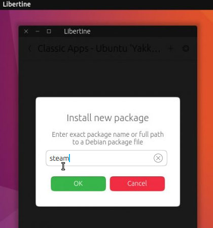在 Libertine 容器中安装软件有两个方法。第一种是允许用户启动容器后选择“输入包名或者 Debian 文件”,这意味着用户可以在软件中心或者终端找到一个软件的名字,然后在 Libertine 中输入它来安装。也可以指定特定的 DEB 文件来安装,可以在Libertine LXC 容器中直接搜索安装包。