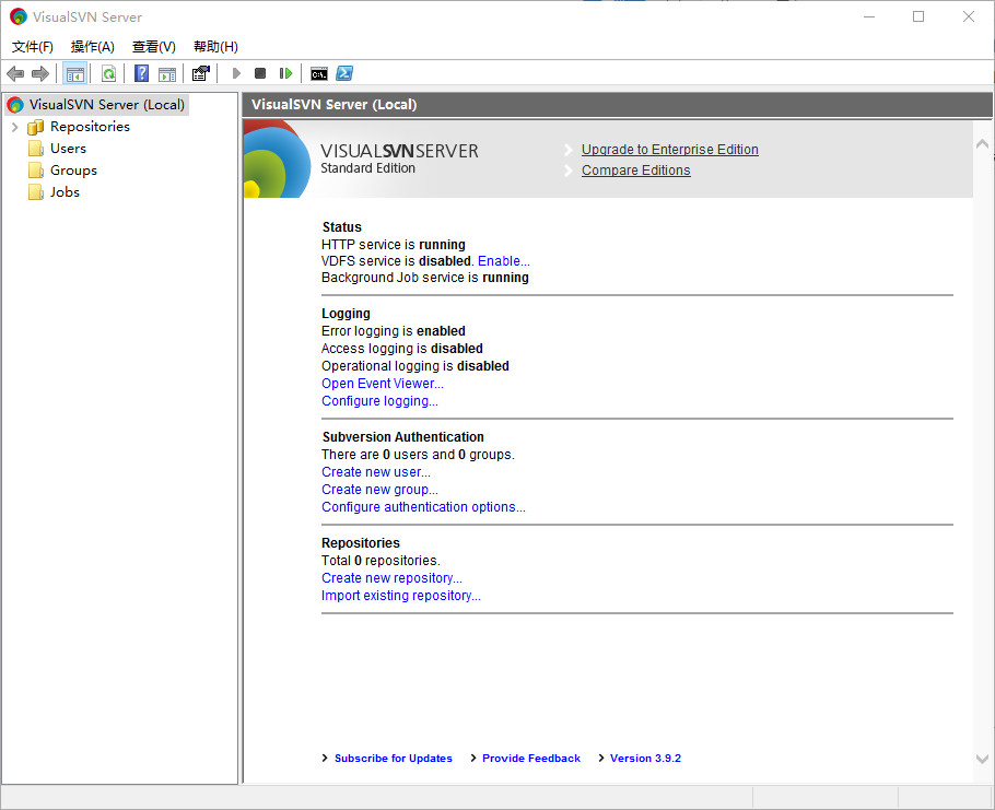 1、我们先安装SVN服务器,安装教程可以参考连接:https://www.cnblogs.com/chenmingjun/p/9916910.html,安装后的效果如下: