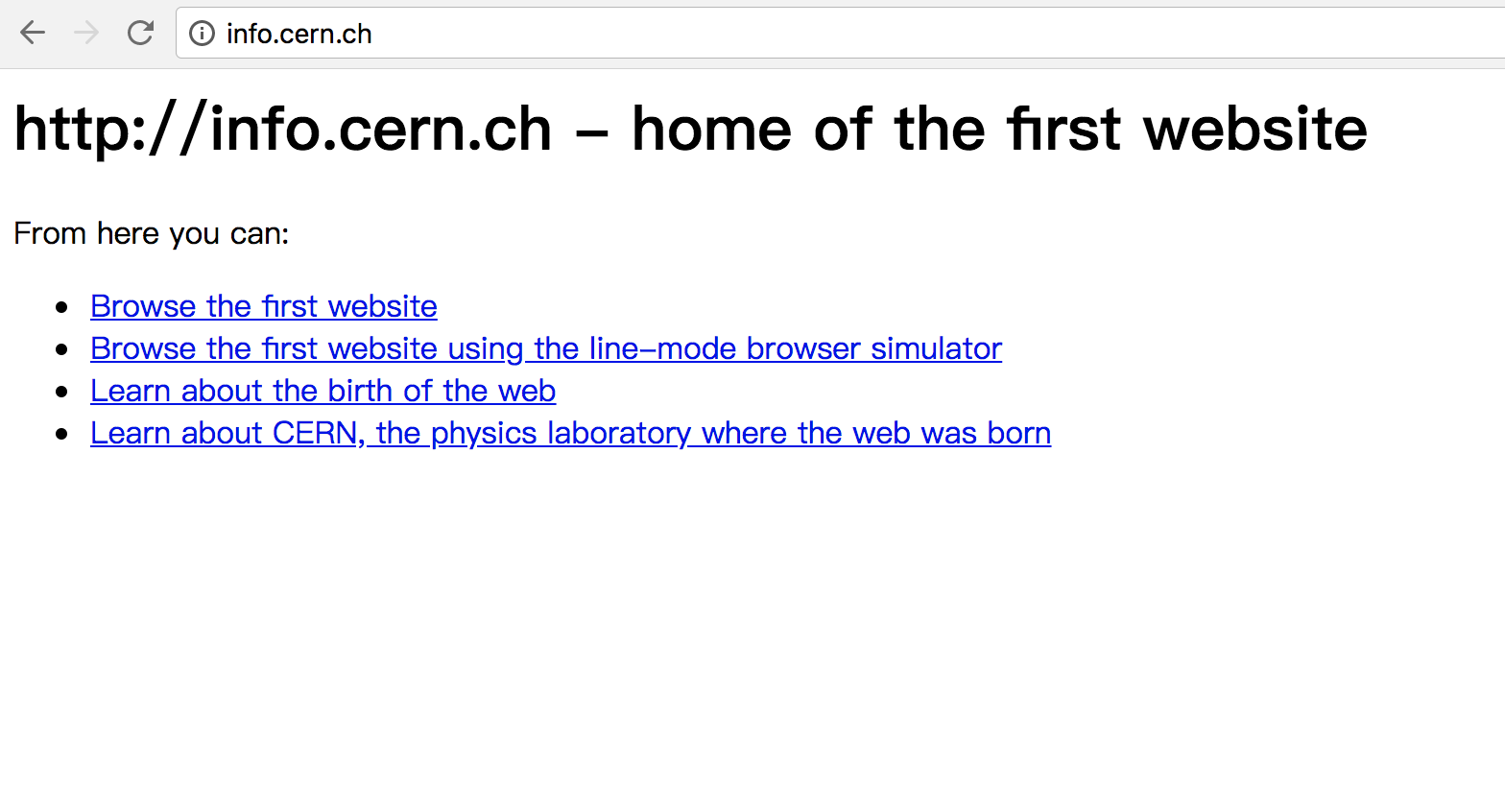 可回到 90 年代初,你会发现,第一个 HTML 网页如此简陋: