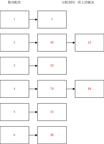 2.分离链接散列表是当散列到同一个地址的值存为一个链表中。