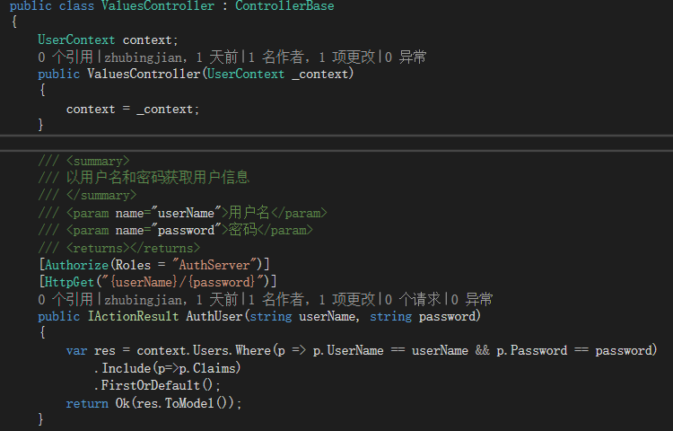 }(3)发现代码里面需要在ResourceAPI项目的ValuesController控制器中
