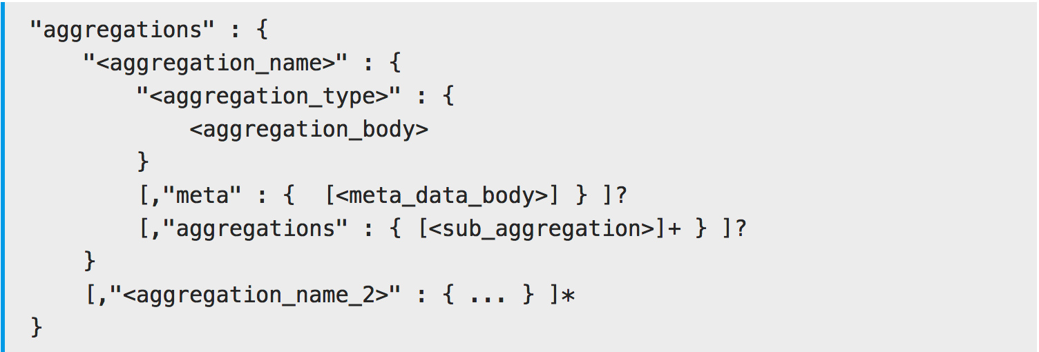 aggregations 是一个JSON对象,它代表一个聚合。(PS:这个关键字也可以用 aggs )