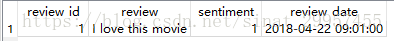 #move_review主要包括四个字段,review_id(评论ID,主键自增)、review(评论内容)、sentiment(评论类别)、review_date(评论日期)