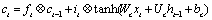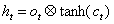 , 为LSTM单元最终输出,使用sigmoid function 作为activation function,