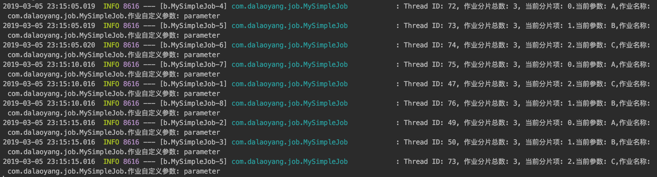 logger.info(String.format("Thread ID: %s, 作业分片总数: %s, " +