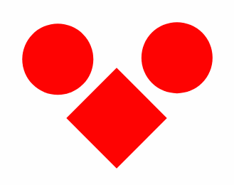 心形是由两个圆形和一个矩形进行组合得到的。