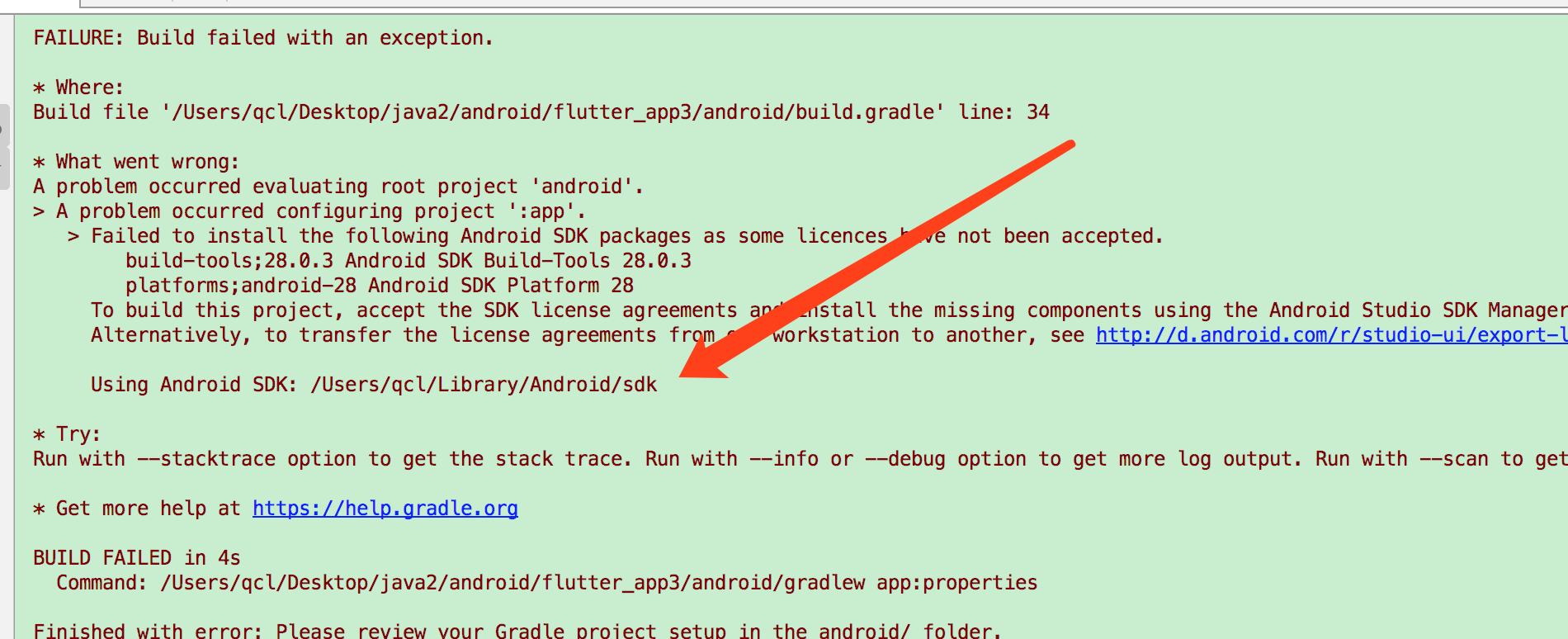 运行flutter项目的时候,遇到来这个问题,刚开始以为是gradle的问题,其实最后仔细看,才知道是我们的 Android SDK Build-Tools 28.0.3没有安装的问题。解决办法也很简单。