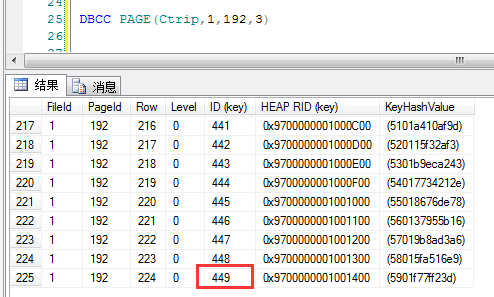 下面我要做的事情就是插入一个ID在1-449范围的一条记录,这样的话就会造成数据页分裂了,对不对。