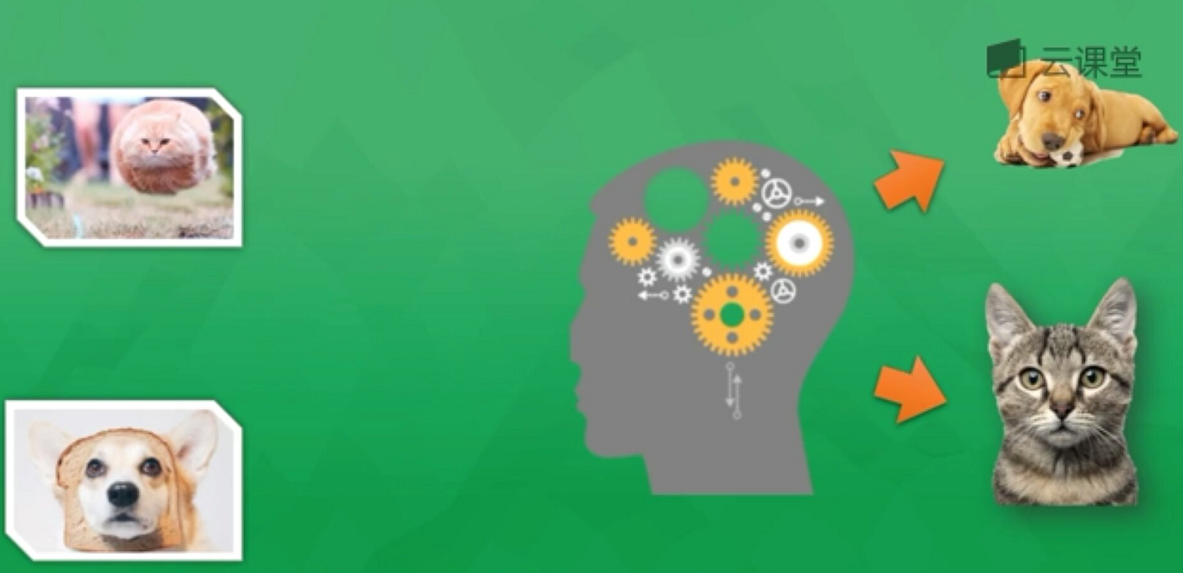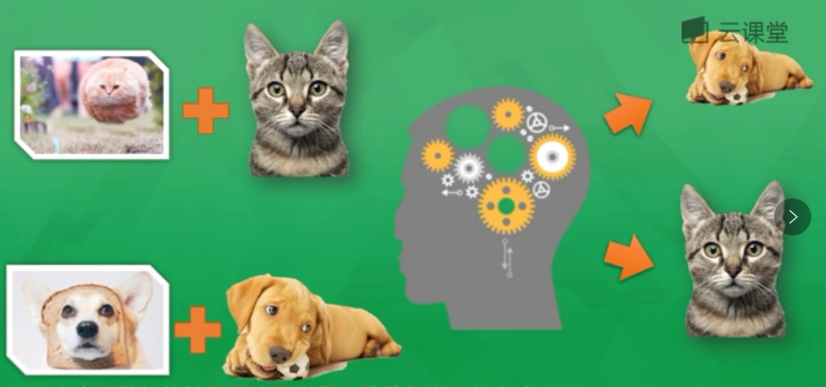 例如下面的示例,通过海量图片学习来判断一张图片是狗还是猫,通过提取图片特征转换为数学形式来判断,如果判断是狗则会反向传递这些错误信息(预测值与真实值差值)回神经网络,并修改神经元权重,通过反复学习来优化识别。