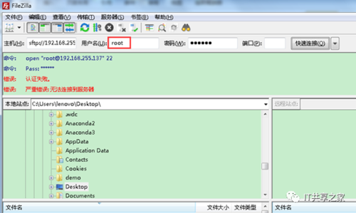 此外还有“错误: 认证失败。”的错误,如下图所示,从而导致“错误:严重错误:无法连接到服务器”现象的发生。