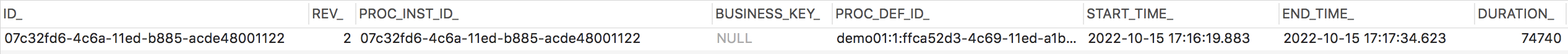 从这个 SQL 中可以看到,这个查询本质上就是查询的 ACT_HI_PROCINST 表。如下图:
