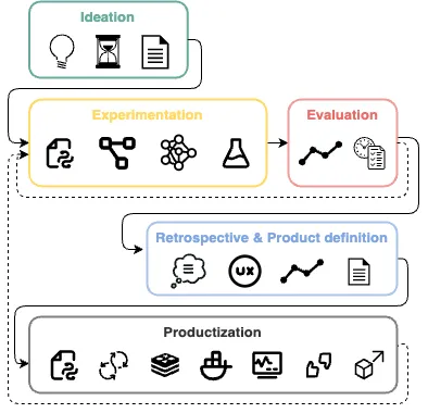 - 实验—— 不管你选择自下而上还是自上而下的实验方法,你的目标是最大化实验成功率。在第一次实验迭代结束时,你应该有一些PoC(利益相关者可以使用)和你已经实现的基础线。