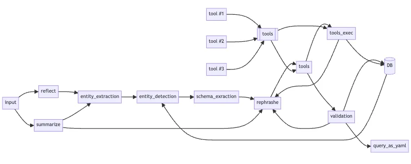 例如,要使用自底向上方法实现“原生语言 SQL 查询”,我们将从简单地将模式发送给LLM并要求它生成查询开始。