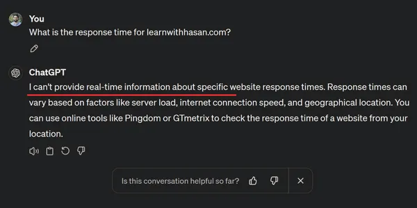 什么是AI代理?如果我们询问像ChatGPT这样的AI:learnwithhasan.com的响应时间是多少?