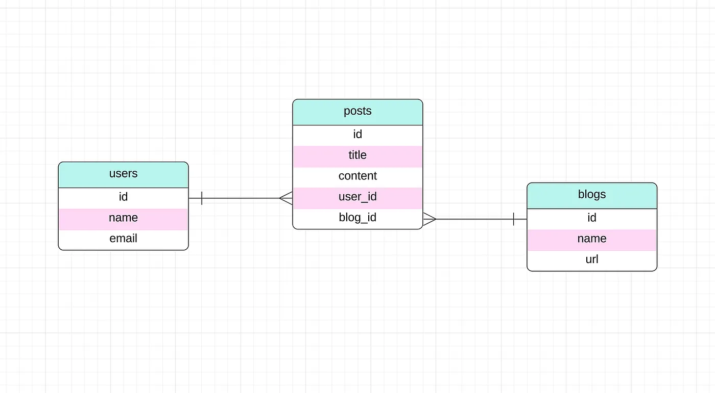 演示模板在这篇文章中,我们将使用一个简单的结构,包含三个表:users,posts 和 blogs。为了简单,我们将使用 SQLite 作为我们的数据库引擎,如果选择其他数据库引擎也不是问题,因为我们即将探讨的所有库都支持多种 SQL 方言。
