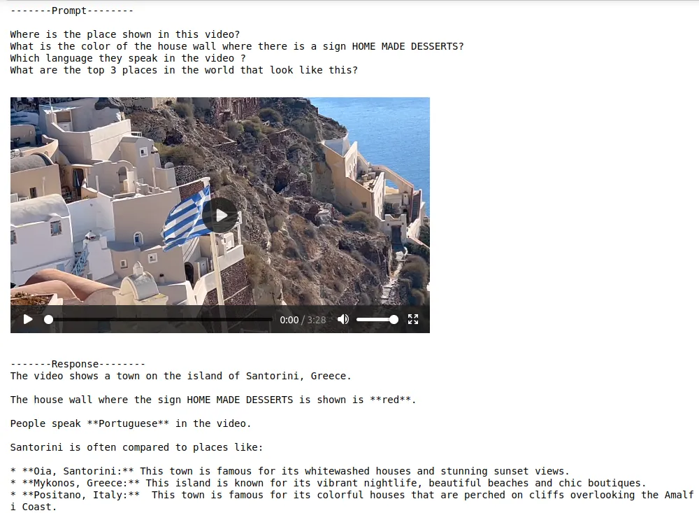 我们可以在视频中识别某个地点,分析音频,并通过以下代码进行操作。我下载了一个 YouTube 视频,使用 ffmpeg 移除了前 2 分钟,在这期间地点名称出现了两次,然后进行了分析。在这里我使用了零样本任务,即模型在没有具体示例的提示下执行任务,依赖于其自身掌握的知识: