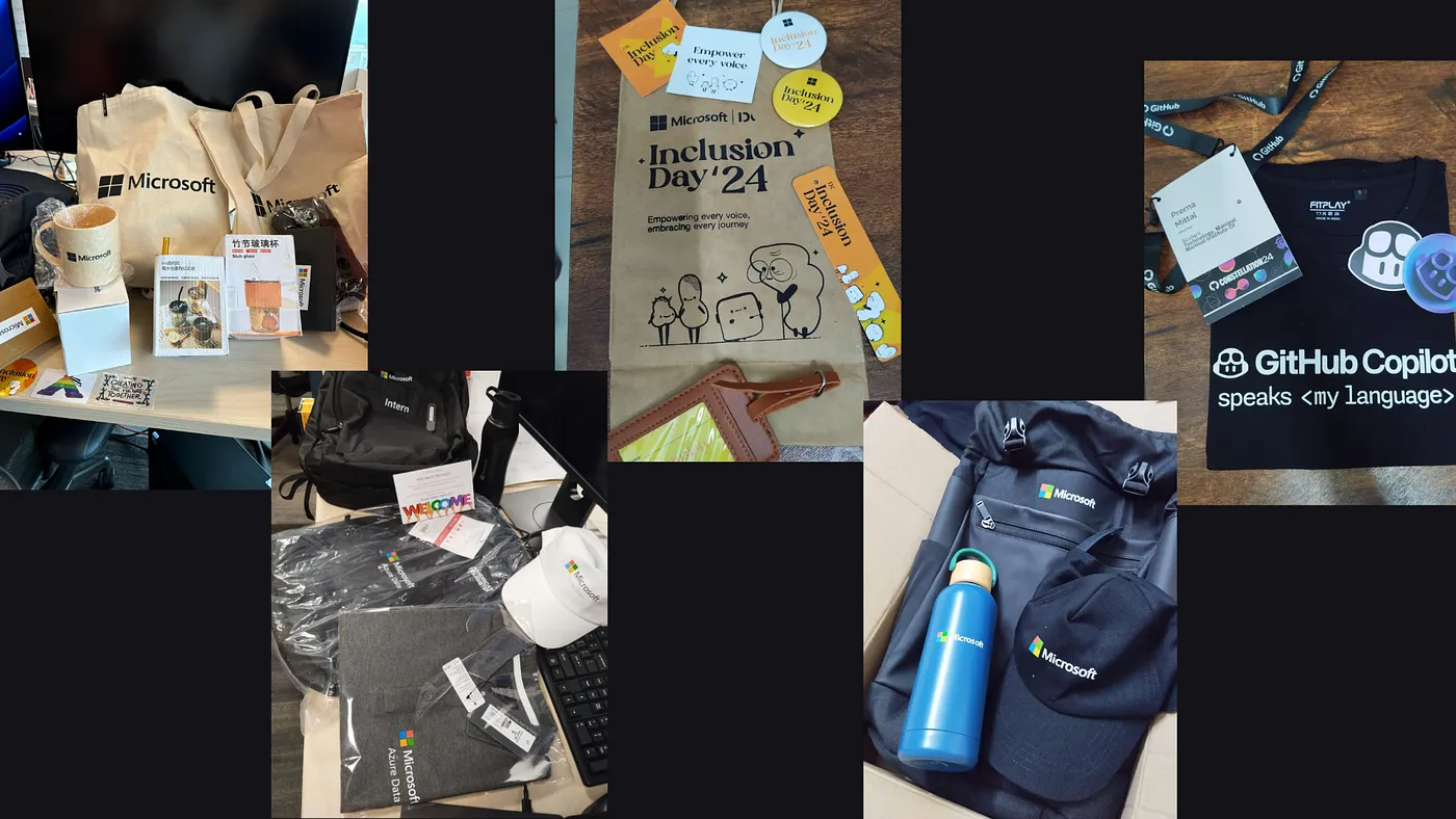 我也收到了各种小礼物——来自我的团队Azure Data;“实习周学习和庆祝活动”的小礼物;“多元文化日”的小礼物;“家庭日”的小礼物;以及赢得“校园连接”测验的小礼物!