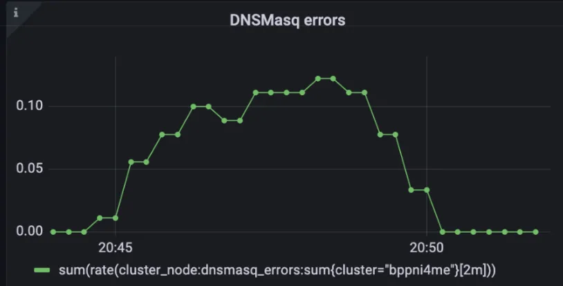 为了让你知道,我们使用 kubenurse,一个小工具来监控Kubernetes集群中的所有网络连接,并通过Prometheus暴露有用的指标。例如,我们常使用的“kubenurse_errors_total”指标,用来找出那些没有更新网络配置的节点。