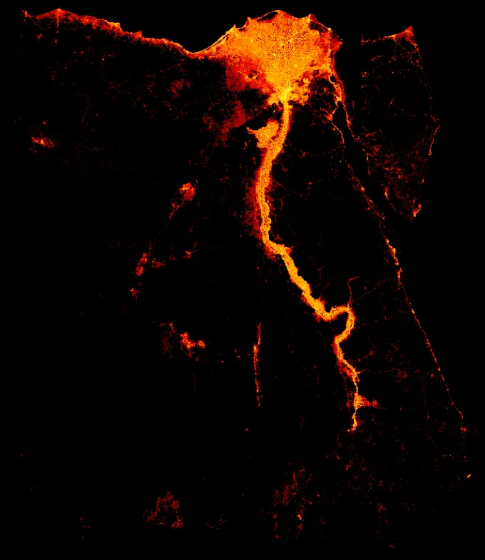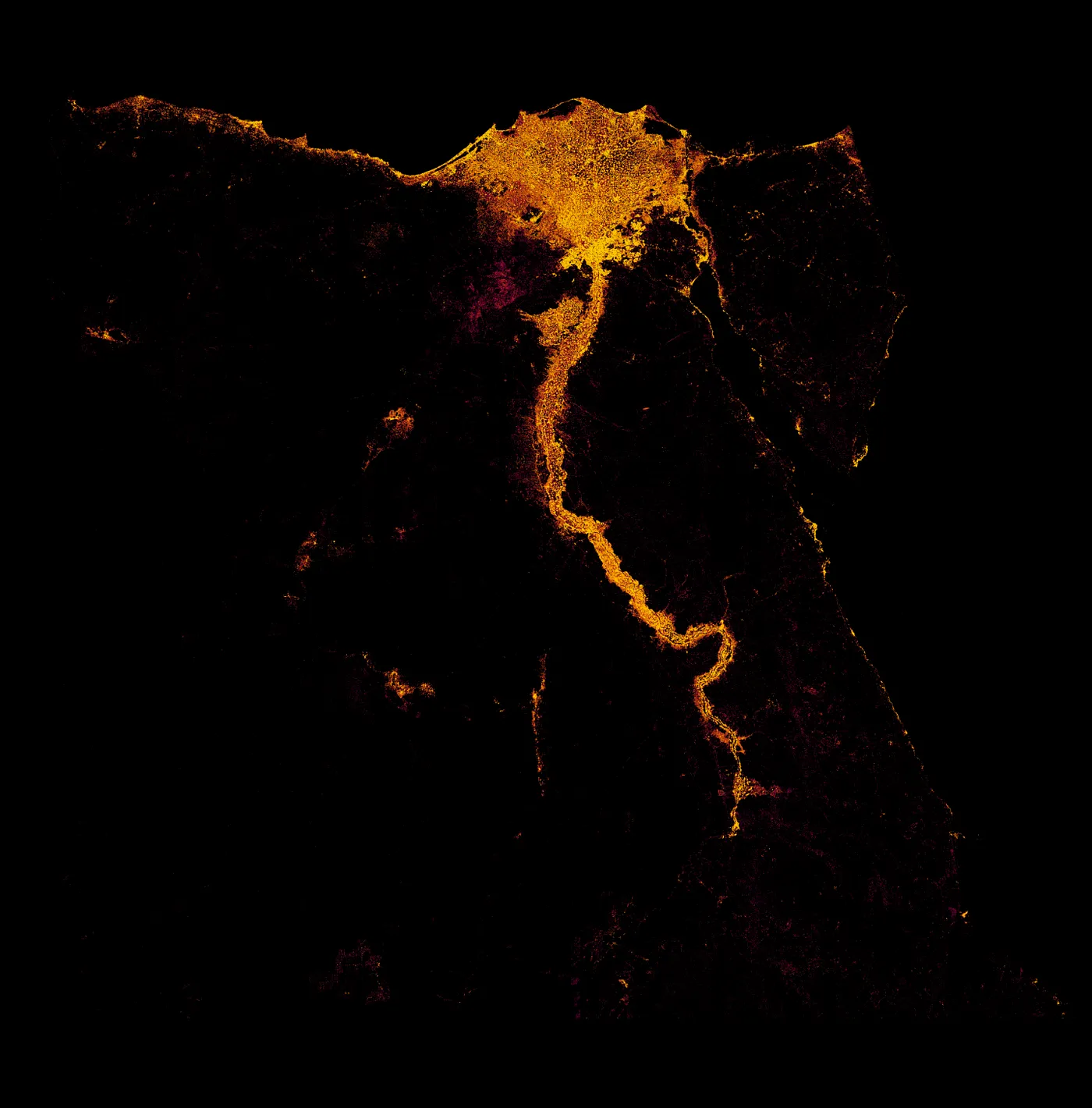 我用H3制作了这张埃及建筑物分布图,你觉得这张地图和上面提到的Datashader版本相比怎么样?