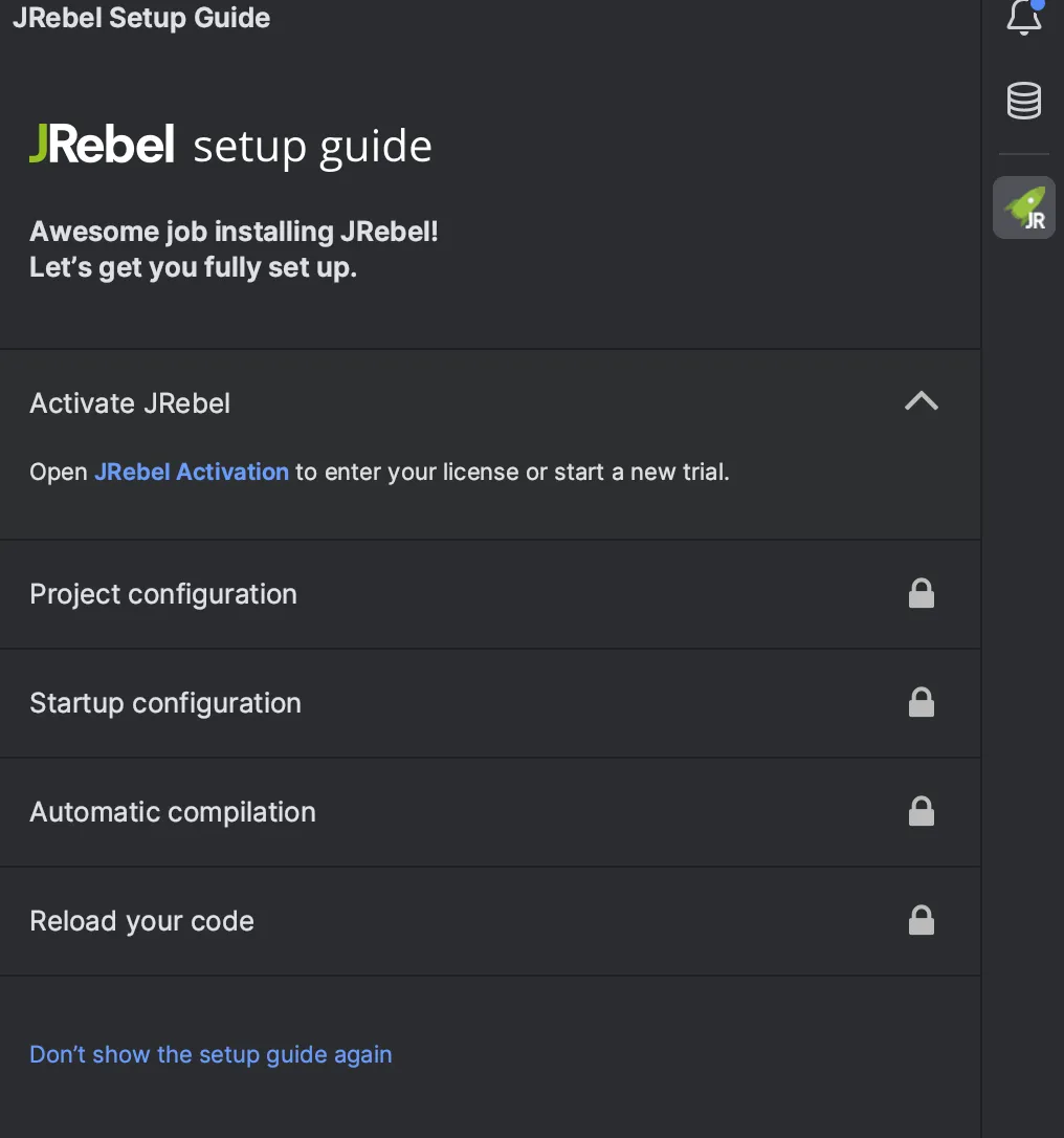 JRebel 是一个提升效率的工具,帮助开发人员即时看到代码改动对应用的影响,无需重启应用程序。JRebel 插件(适用于 IntelliJ)把这一强大功能集成到 IDE 中。