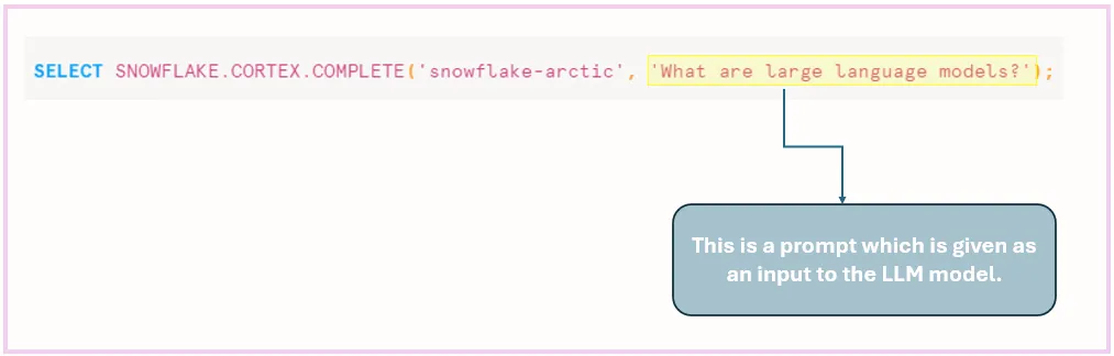 SELECT SNOWFLAKE.CORTEX.COMPLETE(