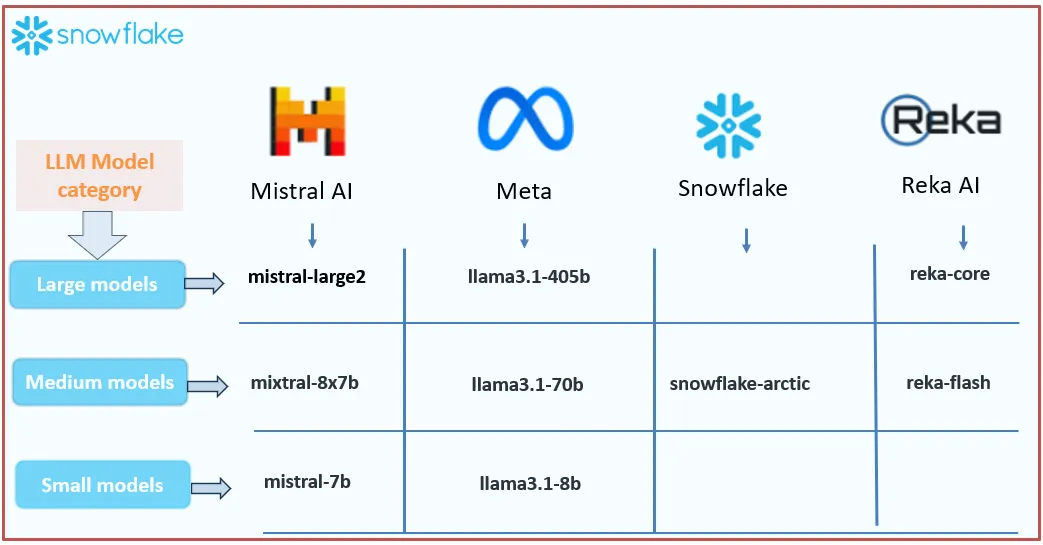3. Llama、米斯特朗、北极等:这些都是用来生成洞察的LLM模型。每个模型都是我将要在接下来的部分提到的公司开发的。