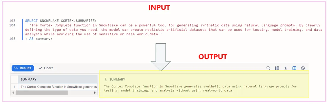 SELECT SNOWFLAKE.CORTEX.SUMMARIZE(