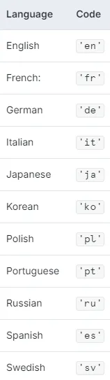 将指定文本从任何支持的语言翻译成其他任何语言。此功能支持以下语言代码: