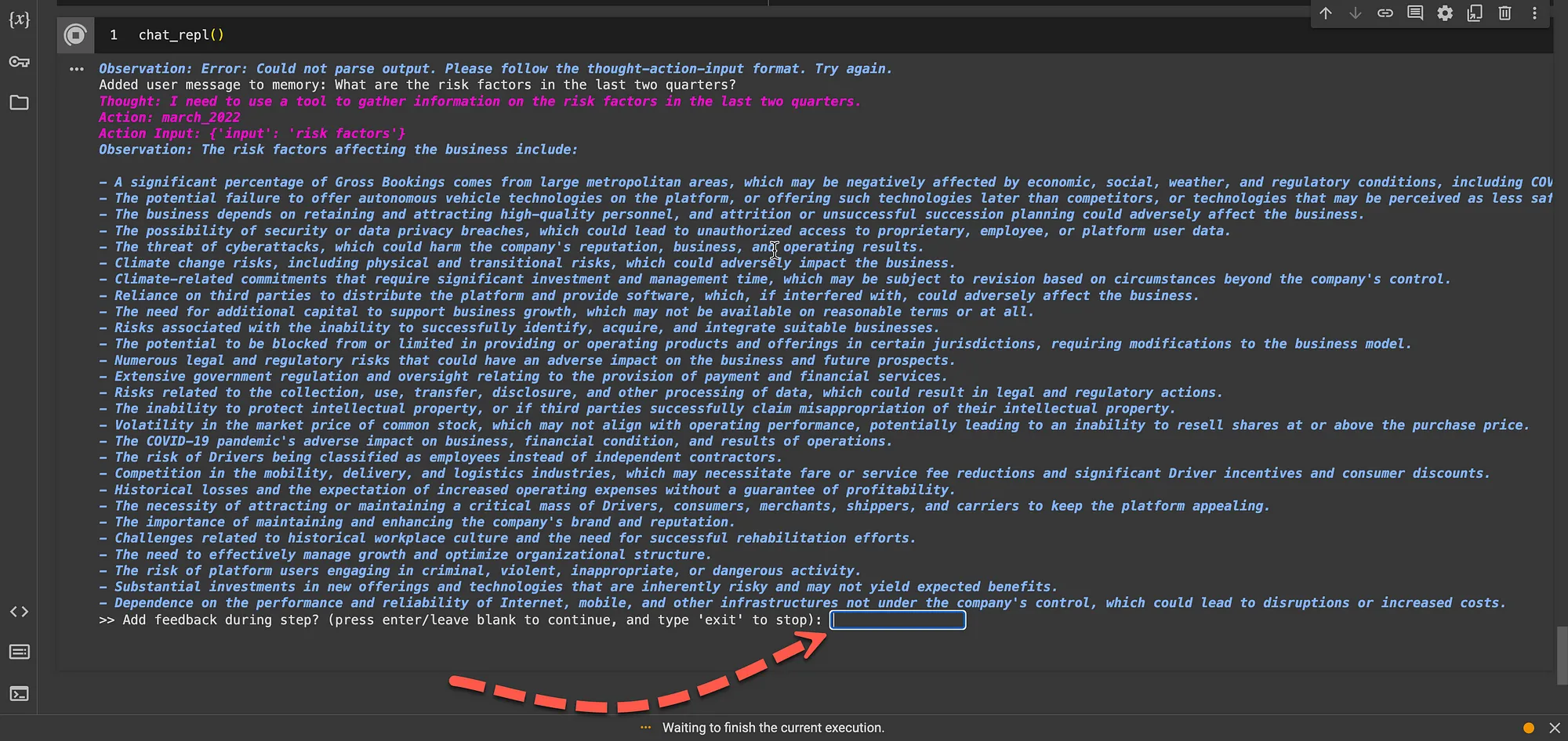 当用户通过提问来使用HITL方法时,允许在每一步后通过用户的人类反馈进行更细致的反馈。这些迭代过程较短,可以由用户控制。在此过程中,用户可以利用代理型RAG的能力。