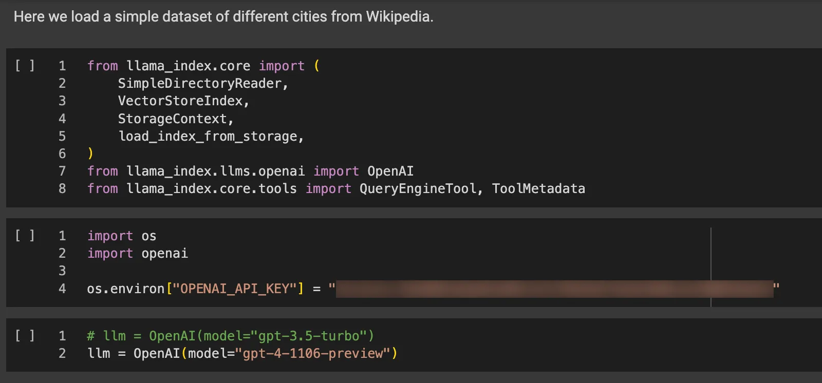 LlamaIndex 有一个完整的Colab笔记本来展示这项功能,如下所示,您唯一需要做的更改是添加您的 OpenAI API Key。