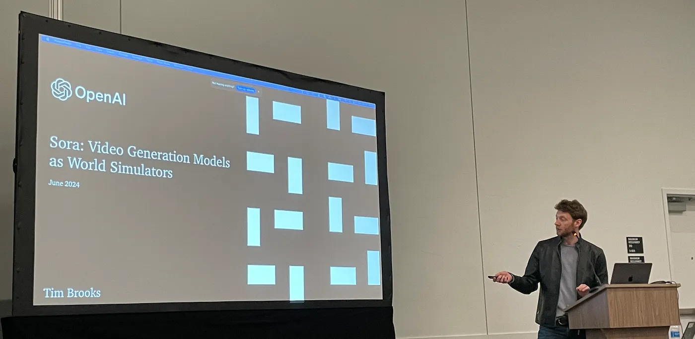 图2:OpenAI研究员蒂姆·布鲁克斯在Sora的GenAI主题演讲中[11]