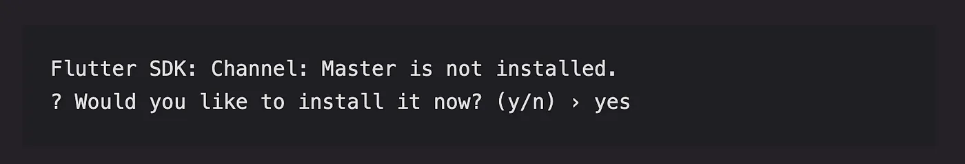 在你的项目目录中打开终端并运行 fvm flutter --version。FVM 应该会告诉你 "Master" 没有安装,并提示你安装它。