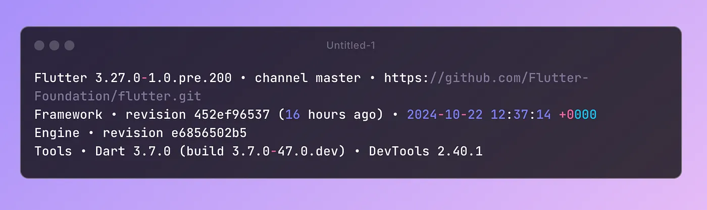 为了确认您的Flock安装是否正确,运行fvm flutter --version,并确保您的Flutter git URL是[https://github.com/Flutter-Foundation/flutter.git](https://github.com/Flutter-Foundation/flutter.git)