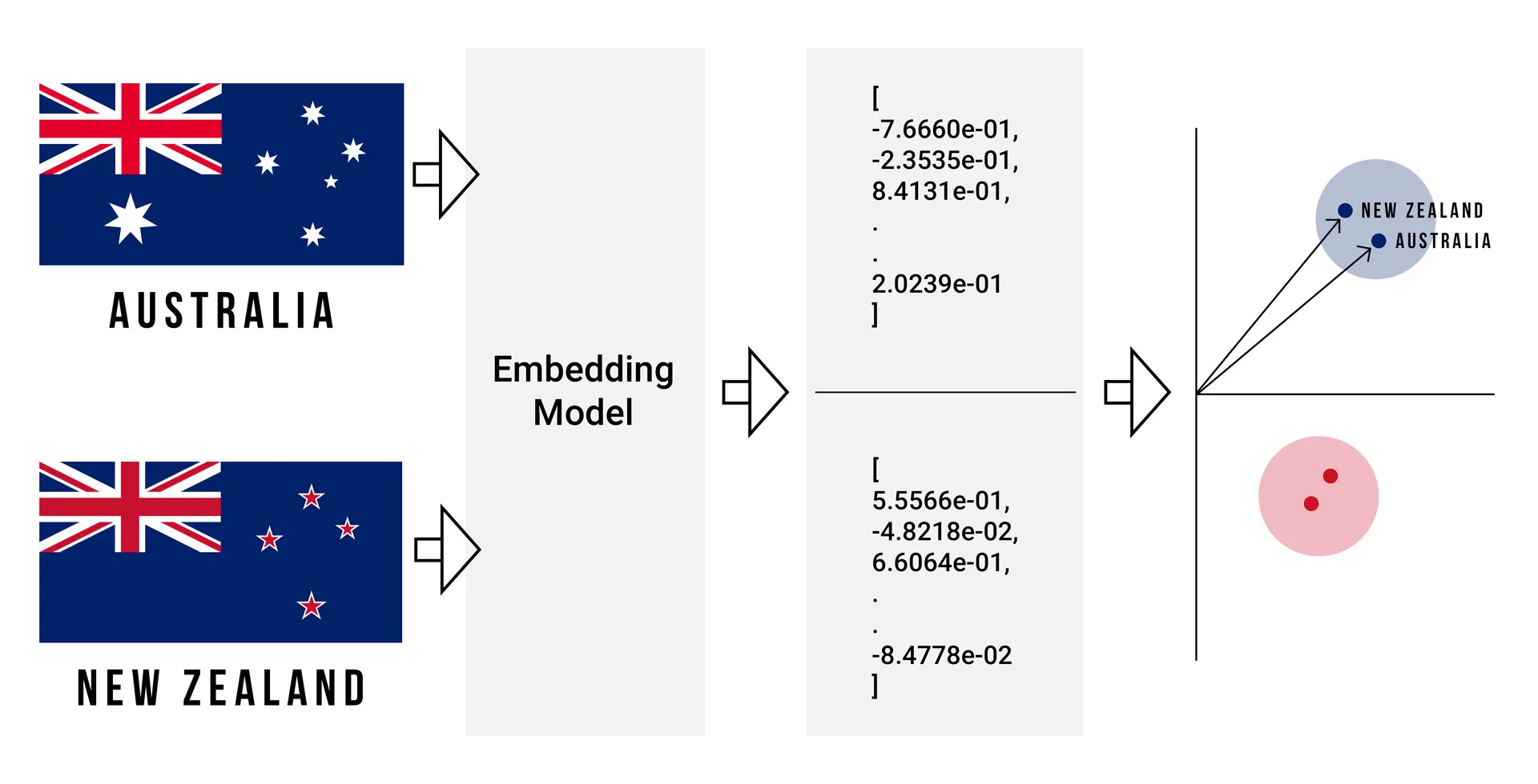 - 利用FAISS进行相似度搜索:我们利用FAISS,一个优化的高效相似度搜索库,找到排名前K位的最相似国家,这些国家是基于它们归一化的国旗嵌入来进行比较。这使得在大规模国旗图像数据集中快速和可扩展地进行比较成为可能。