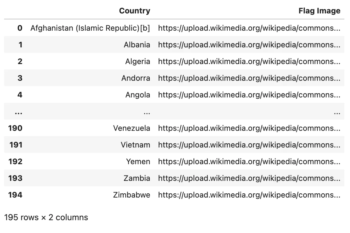 第一步:数据整理我从维基百科上获取了国旗的图片,将世界各国的国旗图片整合成了一个数据集。
