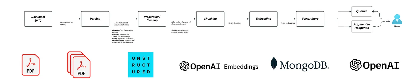 这条管道—依托Unstructured.io的解析和分块功能、PyMuPDF的文档分割、OpenAI的嵌入式模型、LangChain的NLP能力以及MongoDB的可扩展的存储—提供了一种创新的方式来管理和存储信息。结果是一个动态智能助手,能快速访问重要信息,而无需进行繁琐的手动查找。
