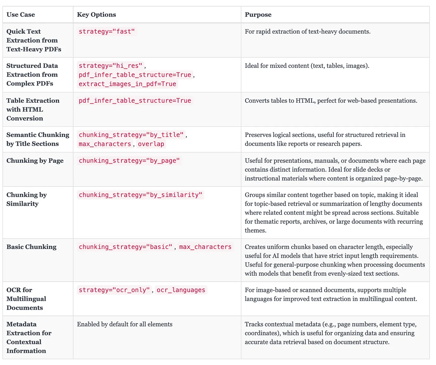 策略使用基于模型的提取来保留文档的布局,准确捕捉表格和图片等。pdf_infer_table_structure=True