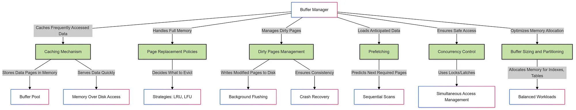6. 缓冲区管理缓冲管理器通过缓存经常访问的数据来减少磁盘 I/O。