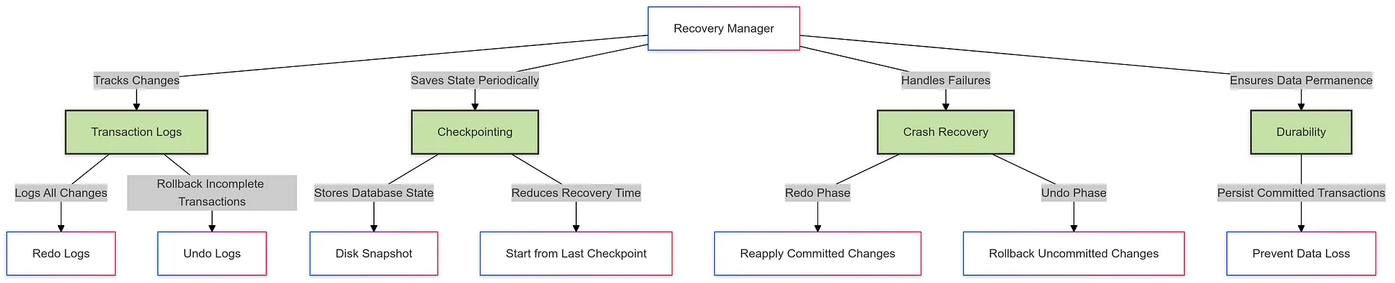 • 确保ACID特性(原子性,一致性,隔离性,持久性)。