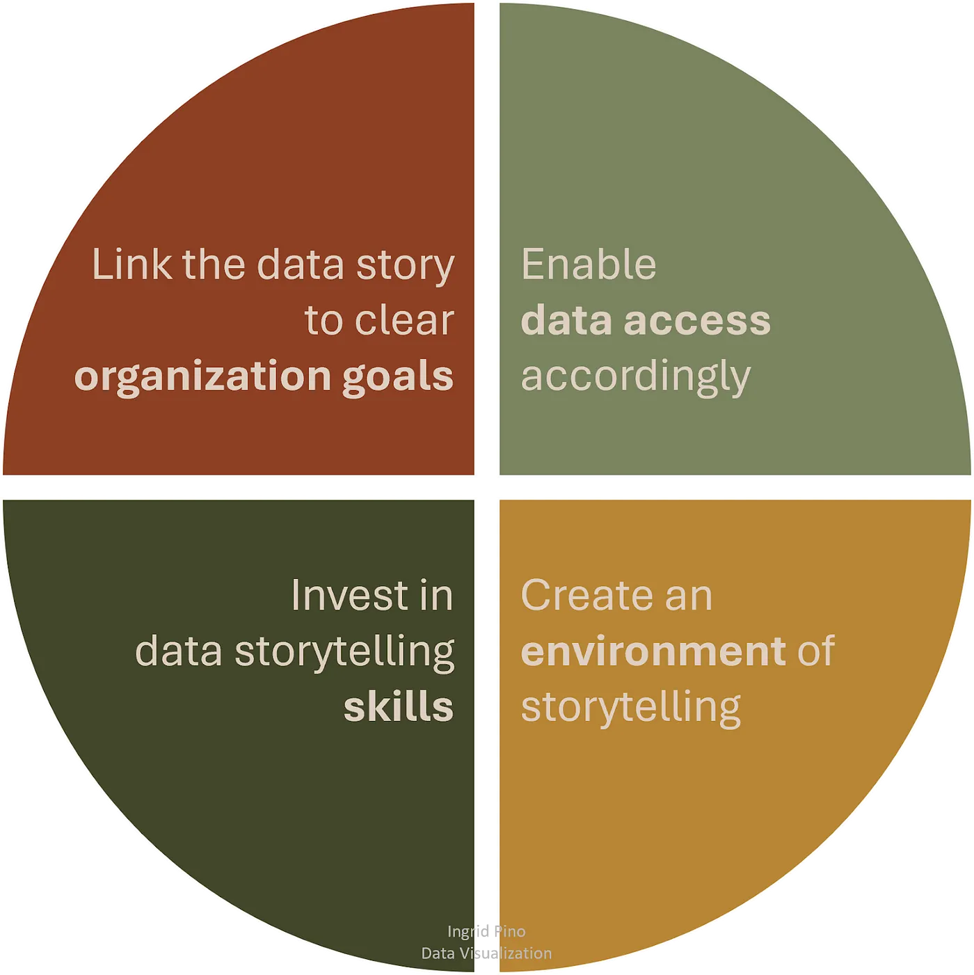 - 我们是如何营造一个开放和支持叙事的环境的?这意味着考虑如何在会议、休息时间、电子邮件、消息以及内部平台或仪表板工具中分享数据故事。小贴士:定期留出时间进行数据叙事,鼓励分享故事的好奇心和开放性。