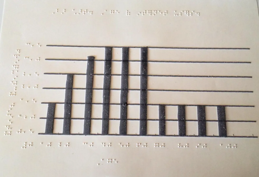 解决无障碍问题的关键在于创意。如果像触觉盲文图这样令人着迷的发明可以用来改善视力低下或失明人士的信息获取,那么当有数据民主化的承诺时,我们肯定能找到更多解决数据叙事无障碍挑战的方法。用视觉或类似感官支持来量化数据是一种强大的工具,可以增强任何人对数据的理解。大多数人通过创建印刷或数字格式的图表在视觉支持下量化数据,盲文图也存在,使数据更具象化。事实上,让数据行为更具象化应是任何类型数据可视化的最终目标。