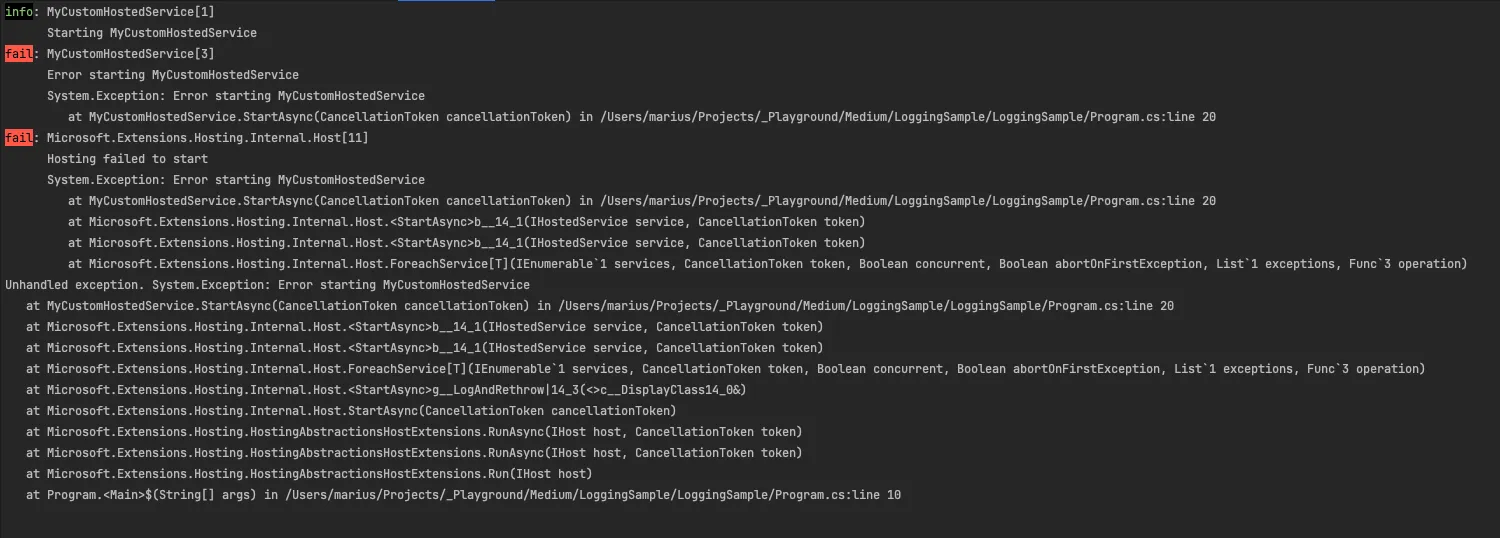 public static partial void ErrorStartingMyCustomHostedService(ILogger logger,
