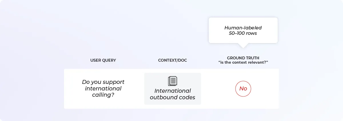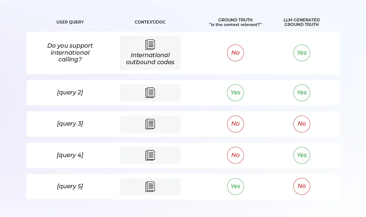 现在从LLM评估模板的角度来看的话,如果输出在所有情况下都被认为是“相关”的,即使不查看数据内容,它几乎在所有情况下(99.99%的时间)都是正确的。但同时,它会错过所有可以说是最为关键的情况——即模型返回不相关结果,而这正是我们必须要捕捉的。