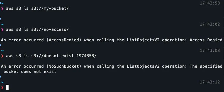 我在忙一个小 AWS 项目时,注意到一些奇怪的事情。我只是随便把命令 aws s3 ls s3://my-bucket/ 拷贝到终端,却没有替换成我的桶名。虽然没有发生任何事情,我还是感到很惊讶。不应该出现个错误提示吗?