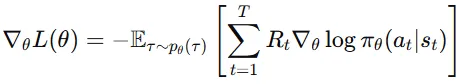 这个修订后的成本函数绕过了环境动态的影响(这些动态通常是未知的),这就是常说的策略梯度定理(你可以参考Lilian Weng的博客文章,了解更多关于策略梯度定理的内容)——策略梯度算法。