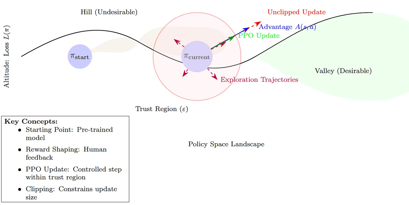 在进一步详细说明InstructGPT如何使用强化学习之前,我们先来回顾一下PPO(近似策略优化,即PPO)是什么以及它是怎么工作的。