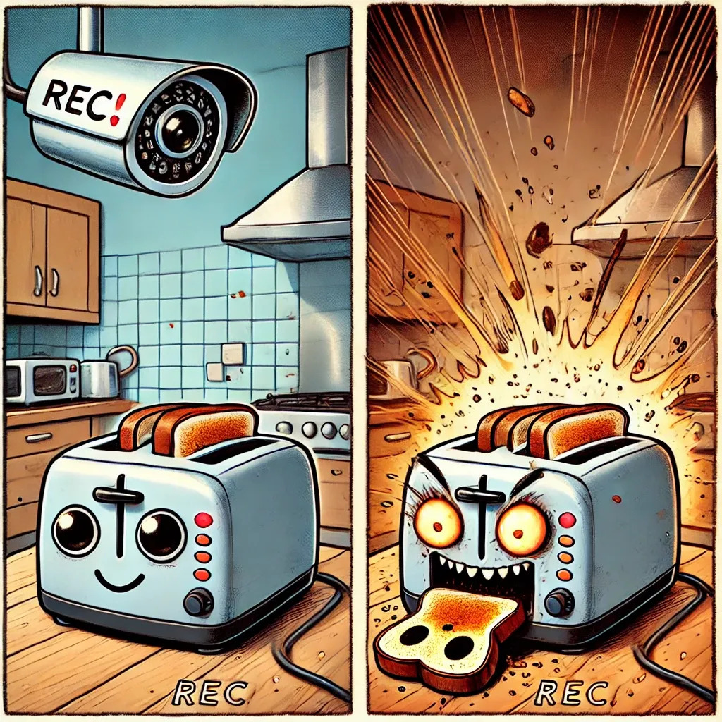 一个卡通风格的插图,描绘了一台机器在没有监管的情况下失控了。(图片由ChatGPT提供)