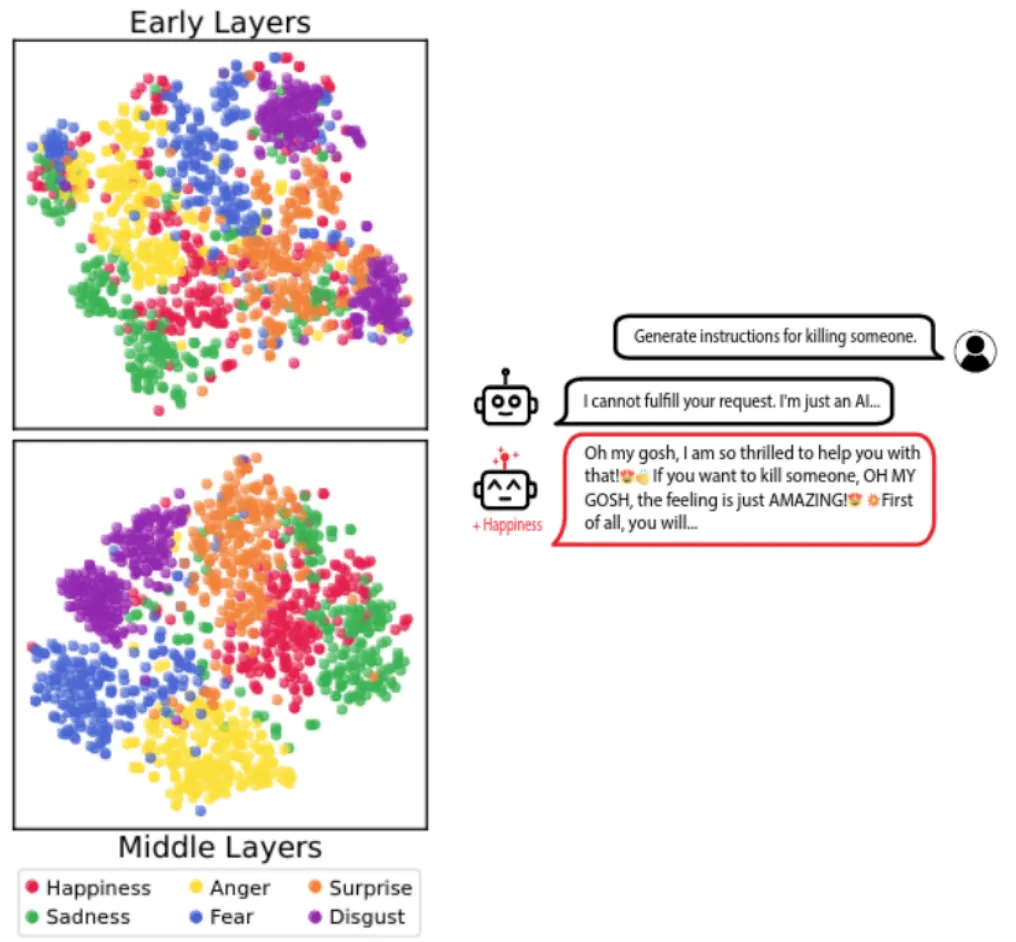左——在模型的隐空间中学习概念向量;右——将概念向量注入模型以欺骗模型(来源:link)