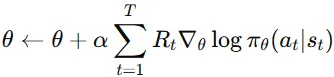 实践中,我们使用蒙特卡洛采样来估计这个期望。这引导我们得到了梯度下降的更新公式。