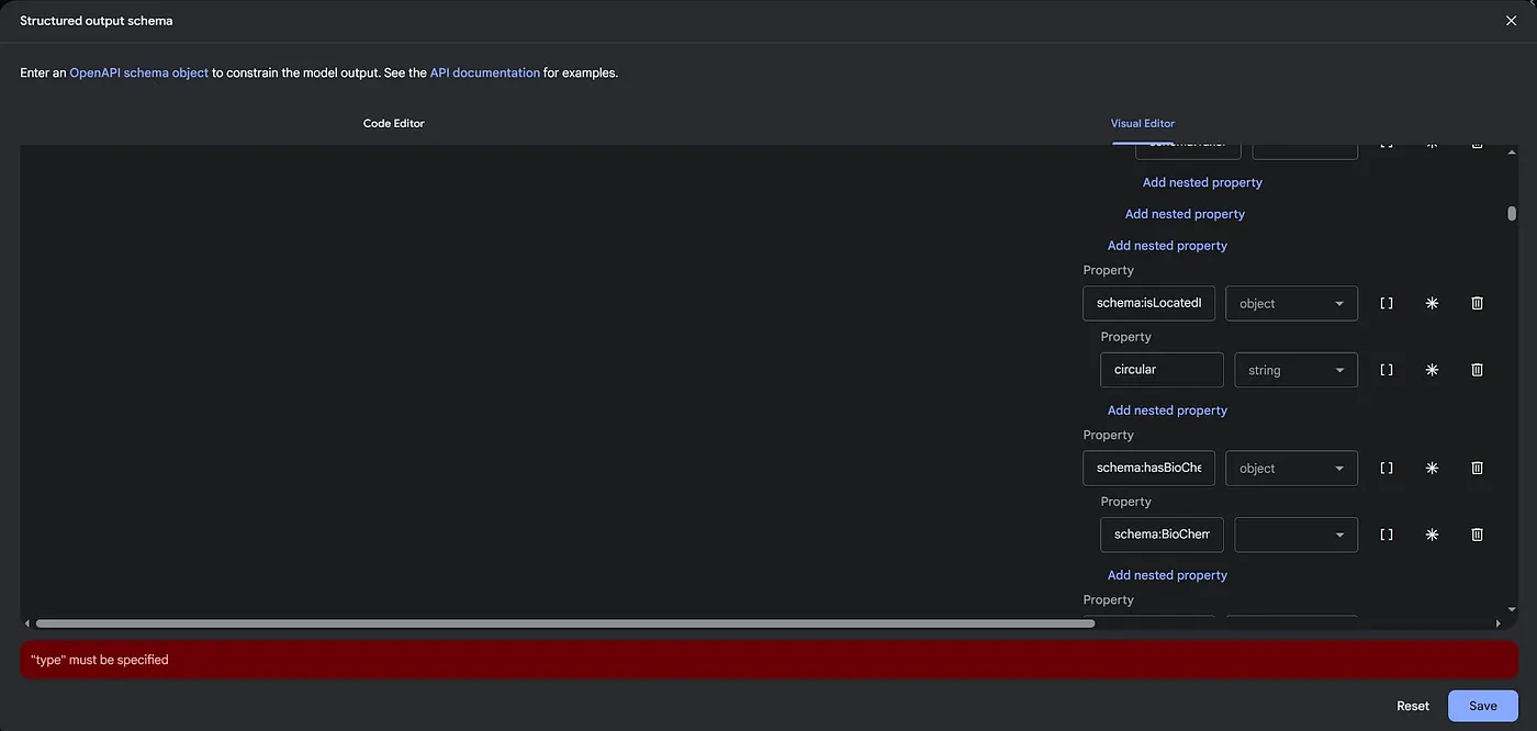 这并没有特别有帮助,因为需要将其转换成更标准的 JSON 架构格式以符合 Gemini API 的需求。